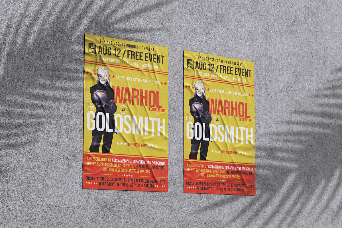The event features proclaimed photographer Lynn Goldsmith talking about her copyright battle with The Warhol Foundation. The case went all the way to the supreme court.